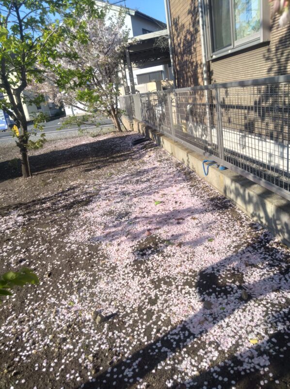 満開だった桜もすっかり散ってしまい、今は葉桜になってしまいましたが、緑の桜もまたいいですね。我が家の畑の桜の花びらがピンクのじゅうたんのようになっていて、とてもきれいでした🌸