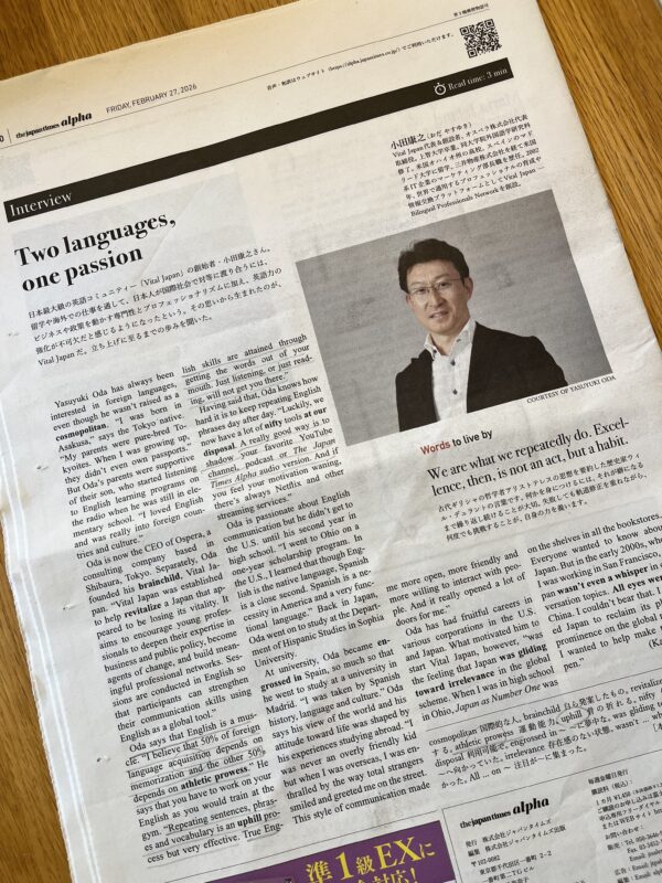 さて、先週の the japan times alpha, Friday, February 27号に” Vital Japan ” の Yasuyuki Odaさんという方のinterviewが載っていました